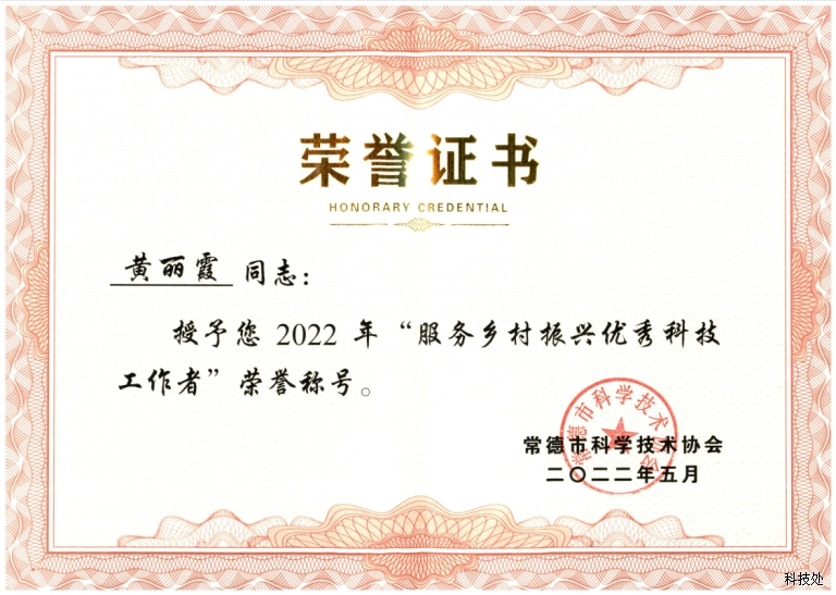 我校黄丽霞、马妮老师荣获“服务乡村振兴优秀科技工作者”荣誉称号
