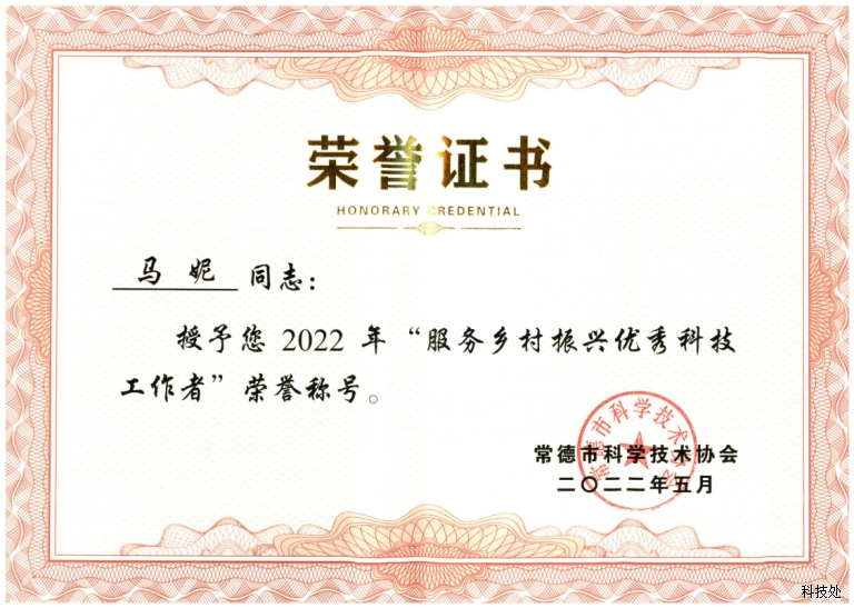 5月30日,常德市科学技术协会召开“2022年常德市‘全国科技工作者日’活动启动仪式暨表彰‘服务企业、乡村振兴优秀科技工作者’活动”,隆重表彰了30名优秀科技工作者。我校马妮、黄丽霞老师获此殊荣,成为我校服务乡村振兴科技工作者的优秀代表。