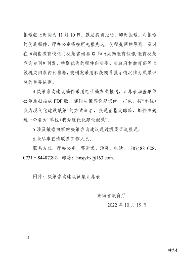 关于在全省教育系统开展“贯彻党的二十大精神我为现代化建设献策”活动的通知 湖南应用技术学院-科技处 2022/10/28 10:49:06 552 上一篇:关于公布2021年度湖南省职教高地建设理论与实践研究项目结题名单的通知 下一篇:关于在全省教育系统开展“贯彻党的二十大精神我为现代化建设献策”活动的通知