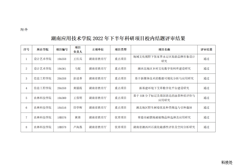 关于湖南应用技术学院2022年度下半年科学研究项目校内结题评审结果的公示