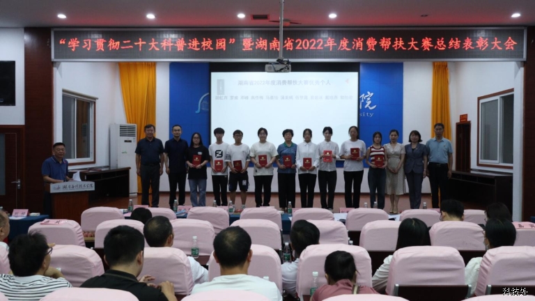 我校召开“学习贯彻二十大科普进校园”暨湖南省 2022年度消费帮扶大赛总结表彰大会