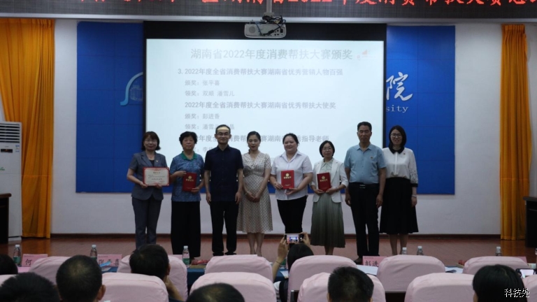 2023年6月15日,我校湖南省高校消费帮扶营销大赛表彰大会在湖南应用技术学院东校区广言堂成功举行。根据湖南省高校消费帮扶营销大赛奖项评选方案,我校被评为2022年湖南省高校消费帮扶营销大赛“优秀组织单位”。
