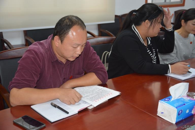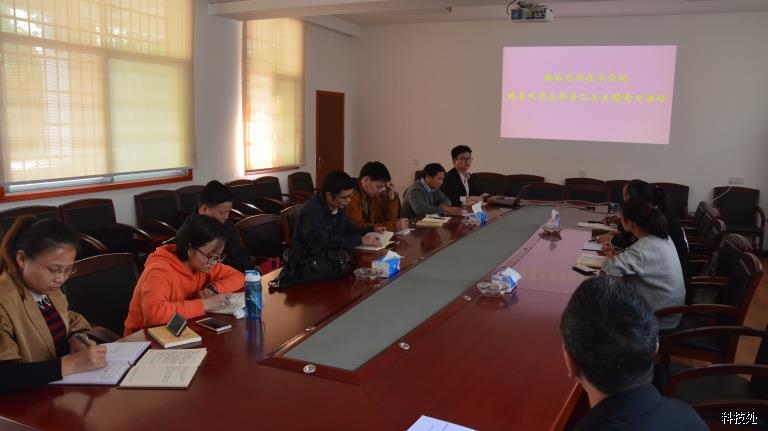 2017年10月26日下午4点,教务处党支部在新校区25栋104会议室举行了第二次主题党日活动。来自教务处、科技处、图书馆、实训中心四个部门的党员同志聚集在党旗下,学习领会中国共产党第十九次全国代表大会的新内容和新精神。