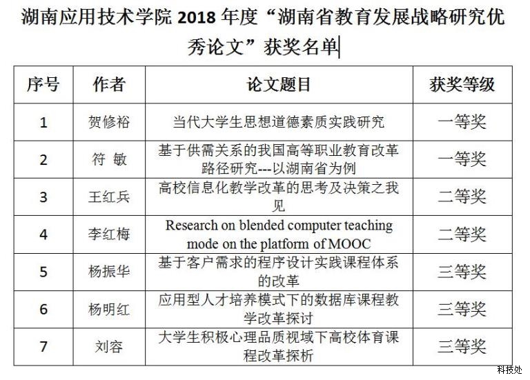 关于我校“2018年度湖南省教育发展战略研究优秀论文”获奖情况的通报